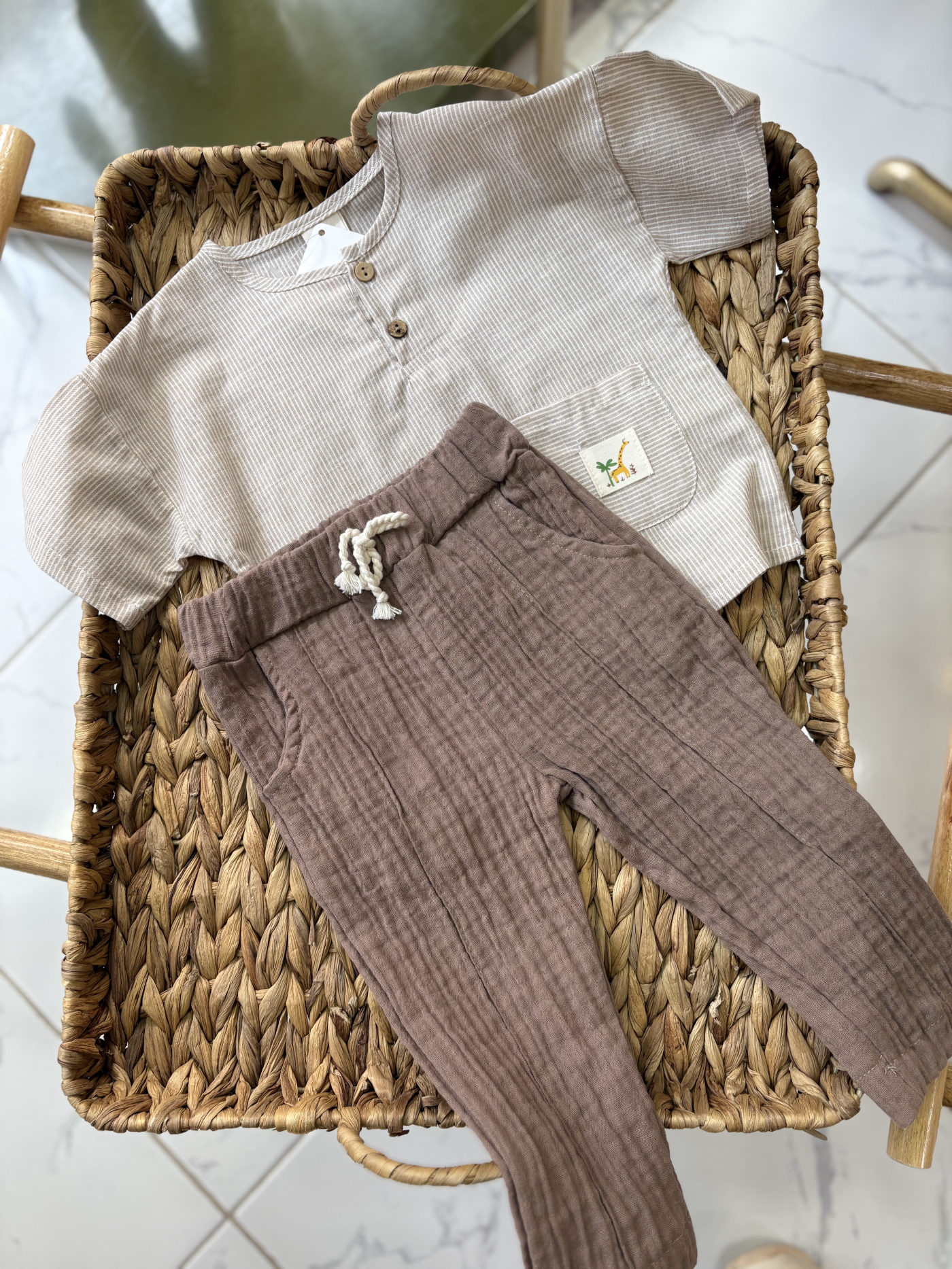 Keten üst Müslin pantolon set