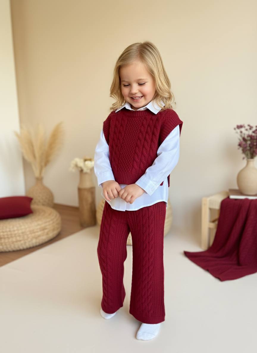 Kız çocukları için özenle tasarlanan gömlekli triko üçlü takım, zarif görünümü ve rahat yapısıyla dikkat çeker. Şık gömlek detayı, yumuşak triko kumaş ile birleşerek hem klasik hem de modern bir stil sunar. Soğuk ve serin havalarda ideal bir tercih olan bu takım, gün boyu sıcak tutarken aynı zamanda nefes alabilen yapısıyla konfor sağlar. Günlük kullanımda ve özel günlerde rahatlıkla tercih edilebilir.