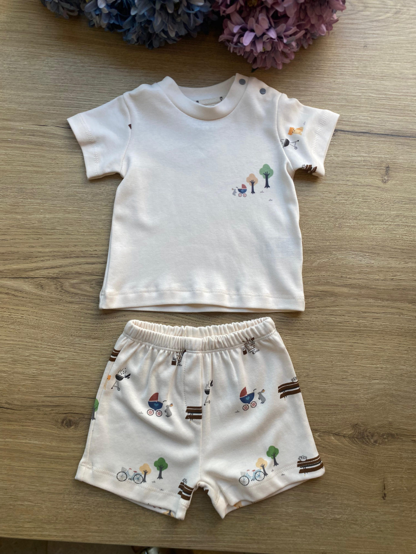 Orman temalı organik kumaş yazlık ikili takım